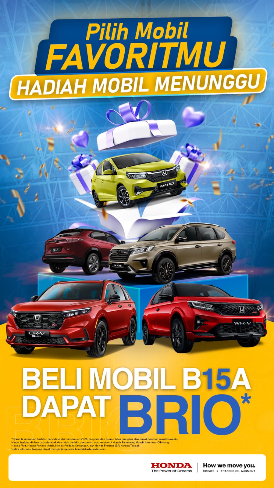 Honda Brio membuktikan diri sebagai mobil Honda paling laris di Indonesia awal 2026 dengan penjualan 3.672 unit, bahkan sempat memuncaki penjualan otomotif nasional berkat efisiensi bahan bakar, harga terjangkau, dan desainnya yang populer.